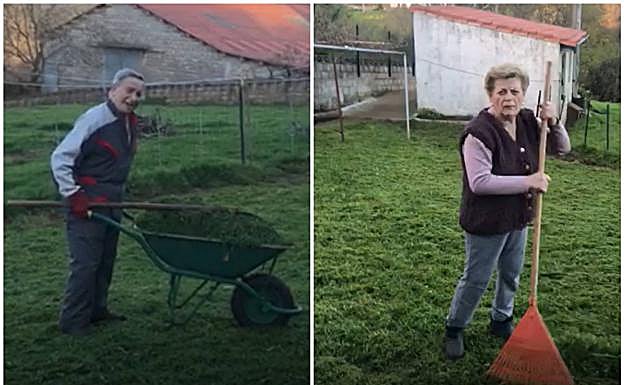 Lourdes Gutiérrez y su marido Ramón Álvarez viven en Lamadrid desde que se jubilaron. Los dos ejercieron su vida laboral en Valdecilla, donde ella era cocinera y él, celador, así que estos días se acuerdan mucho de los compañeros que trabajan a destajo en el hospital. Ella tiene 78 años y, desde hace once, Parkinson. Su cuadro médico se completa con una operación de corazón hace cinco años, de cadera hace diez meses y de útero hace uno. Ramón tiene 81 años, es diabético y tiene una insuficiencia cardiaca. Precisamente sus patologías les hace saber lo importante que es hacer deporte y ellos, en la finca de su casa, practican el 'agrogym'. Allí mismo tienen un huerto y Lourdes se acerca todos los días a ver crecer sus patatas, mientras Ramón recoge la hierba con el carretillo. Cualquier excusa es buena para ir de un lado a otro sin salir al exterior. Echan de menos coger el coche y plantarse en Cabezón a hacer la compra o ir a la piscina. Ahora toca hacer vida y deporte en Lamadrid.