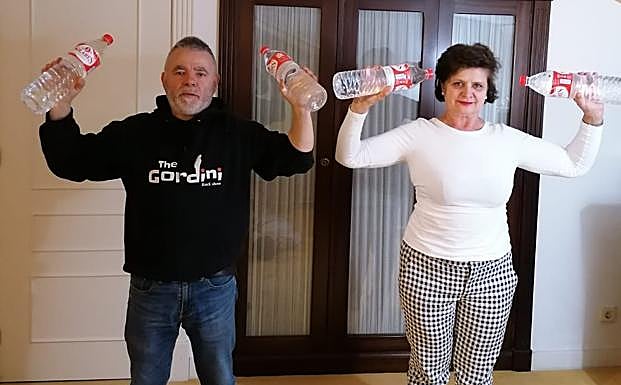 Aída Rivas e Ignacio Dirube han tenido que cerrar sus restaurante de Sancibrián (Casa Aída) y Santander (El Jardín de Aída) y refugiarse, como el resto de los ciudadanos, en su casa. Los dos son muy activos, «están como robles», dicen sus hijos, y eso que no suelen hacer más deporte que salir a caminar de vez en cuando. Ahora, como todos, tienen que conformarse subiendo y bajando las escaleras de su casa, haciendo sentadillas, abdominales, ejercicios con una goma elástica… Los dos coinciden en que a primera hora del día les viene bien hacer algo de deporte con pesas –suelen utilizar botellas de agua o paquetes de arroz–, o cualquier ejercicio que les haga romper a sudar. Y por tarde, antes de cenar, lo que mejor les viene es hacer estiramientos de espalda. Seguir esta rutina les hace descansar mejor.