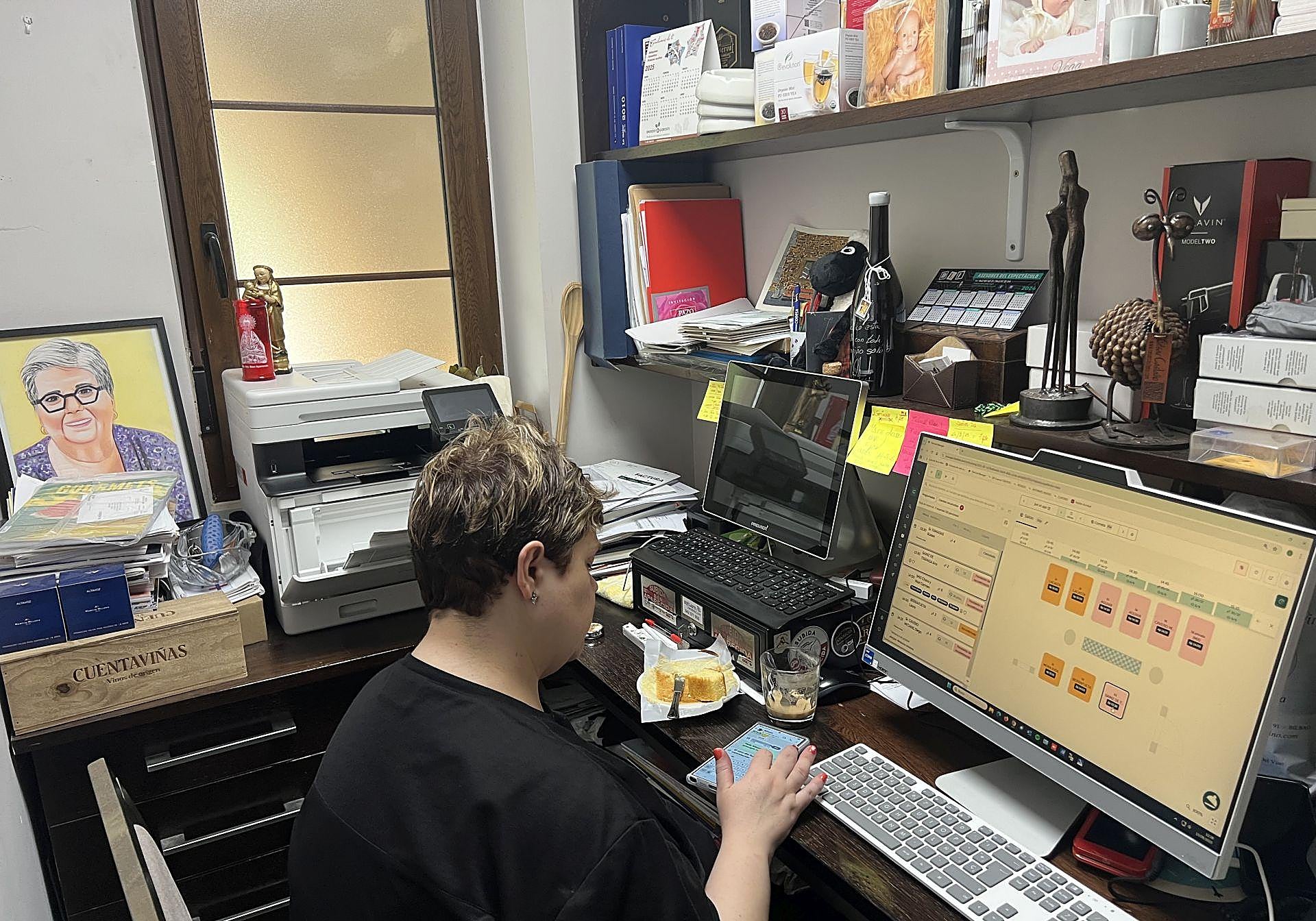 Mientras Nacho lo controla todo desde el fondo de la cocina, donde se ocupa de las tortillas y el calor de los fuegos aprieta, Cristina pone en marcha la elaboración de los guisos –todos los días se hacen pochas y algunos otros platos de cuchara–, las salsas, las tartas y el pan, tanto para el restaurante como para la tienda del bar.