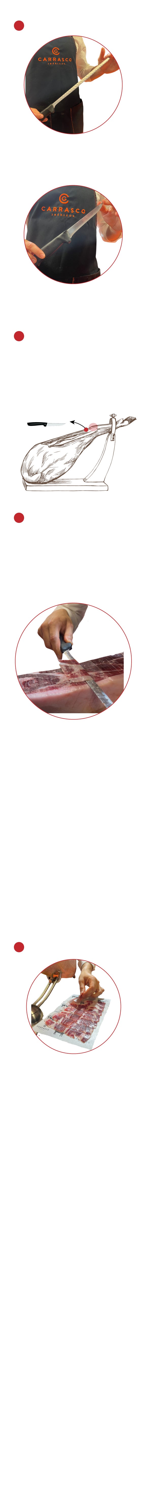 Se debe colocar el cuchillo paralelo a carne. Si está afilado, no es necesario ponerlo en ángulo. El jamonero tiene un ángulo de 12° para que entre sin esfuerzo.
