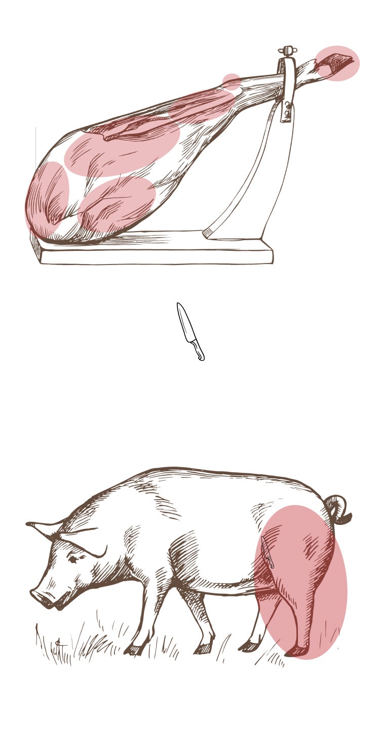 Procede de las patas traseras del cerdo ibérico, específicamente del muslo.