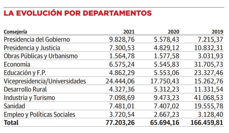 En el lado contrario La consejera Ana Belén Álvarez no reclamó ni un euro y el de Gochicoa fue el departamento más austero