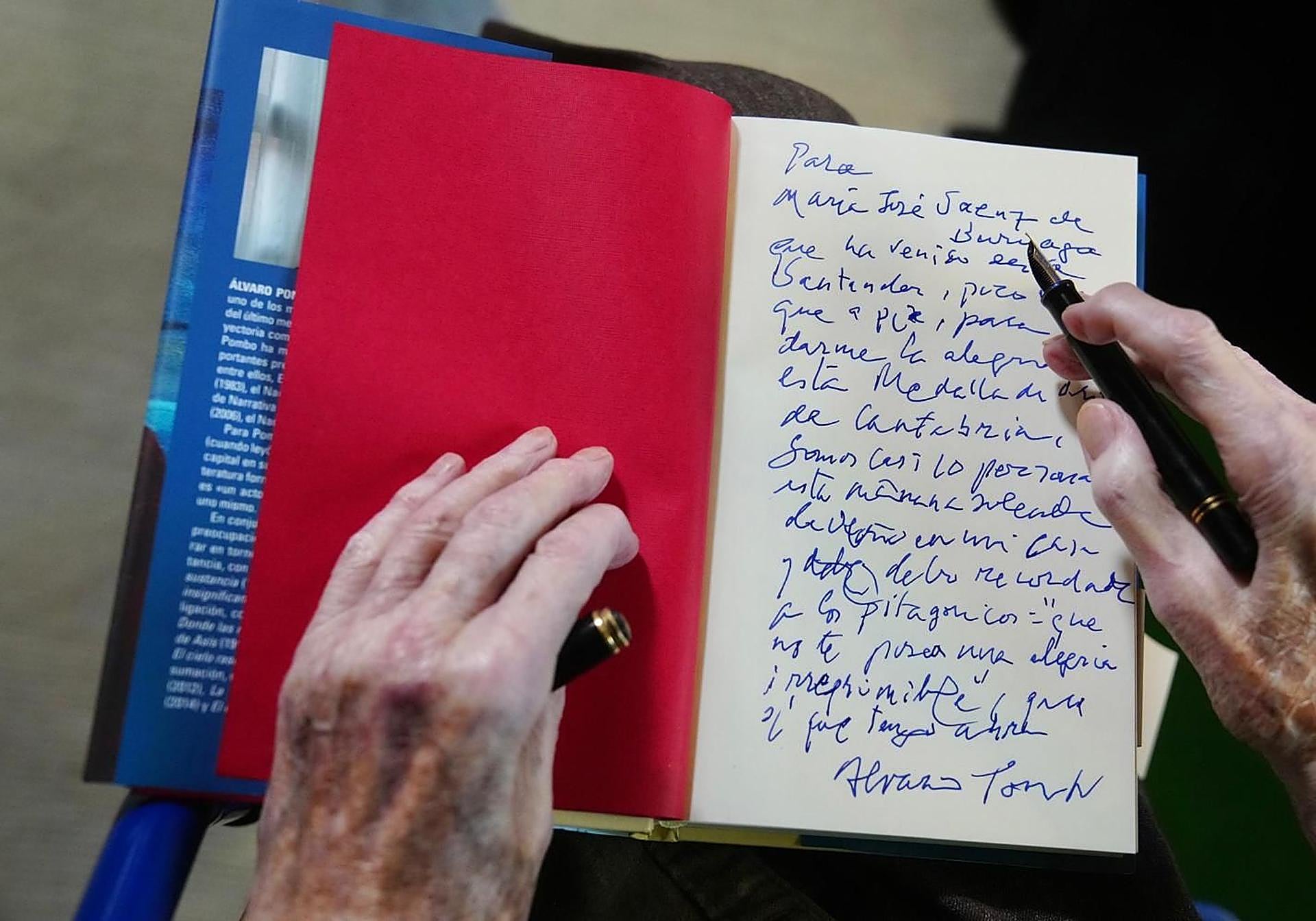 Buruaga trasladó la admiración de la comunidad autónoma hacia un cántabro «cuya vida y obra forman parte de un patrimonio común», y ensalzó una «brillante trayectoria literaria» en la que, además, su tierra natal está presente «proyectando nuestra voz en el mundo». La presidenta destacó, a su vez, este «vínculo» con su región y con su ciudad natal, Santander, que ha sido siempre «profundo y fecundo», Y subrayó: «Aunque su vida y su obra le ha llevado a otros lugares», Pombo siempre ha vuelto a sus orígenes, «a su puerto de Santander, a pasear por sus calles y plazas y a mirarse en su bahía».