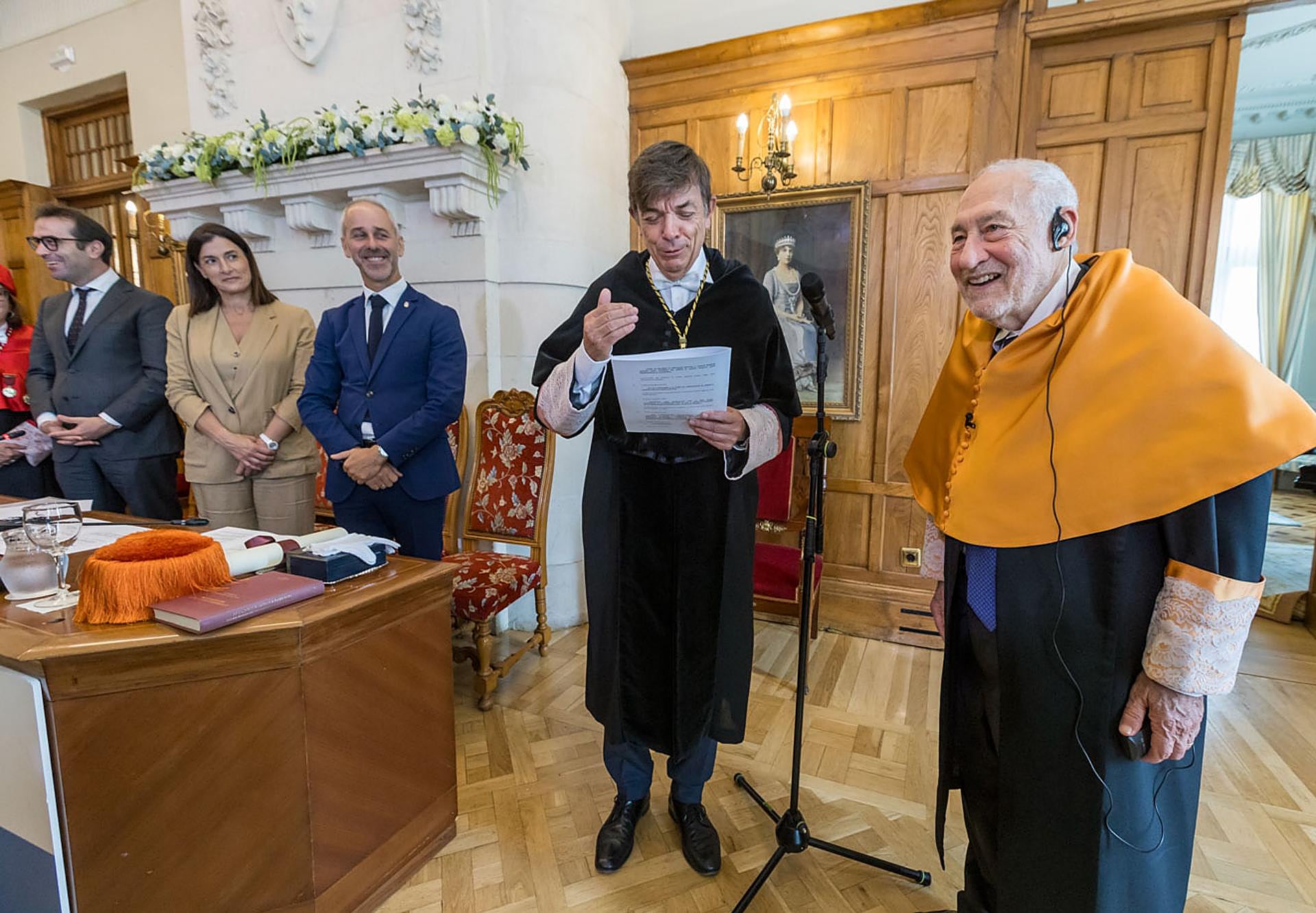 Bajo el mandato de Andradas han pasado por la UIMP figuras de renombre, como el filósofo surcoreano Byung-Chul Han o el escritor rumano Mircea Cărtărescu, que impartieron sendos cursos en 2022. Markus Gabriel, 'estrella' emergente de la filosofía, ha estado dos veranos por Santander, donde también se han celebrado cumbres matemáticas con puntas de lanza como Luis Caffarelli o Alessio Figalli. ¿El objetivo? Enorme. «No callar y alzar la voz frente a las injusticias. Reivindicar y cultivar la ciencia y la cultura frente a quienes los denuestan. Defender la libertad de pensamiento y el debate. Educar para la paz y el respeto. Aspirar a la belleza y a la verdad», cree Andradas. Los honoris causa también han contribuido a proyectar la UIMP. Entre ellos, figuran la escritora Isabel Allende, el Nobel de Economía Joseph E. Stiglitz y la biofísica Eva Nogales (2025); el Nobel de Literatura Jon Fosse (2024), o la escritora Siri Hustvedt y el historiador Orlando Figes (2023). Otra imagen para el recuerdo es la de los expresidentes del Gobierno –Felipe González, José María Aznar, José Luis Rodríguez Zapatero y Mariano Rajoy– pasando por las caballerizas en los actos del 90º aniversario. La fachada del Palacio cubierta de luces marcó una celebración con la que Andradas quiso abonar el camino hacia el centenario y sacarle brillo a la historia: la UIMP es la universidad de Lorca, Borges, José Hierro, Valery, Vargas Llosa, Almudena Grandes, Schödinger o Margarita Salas.