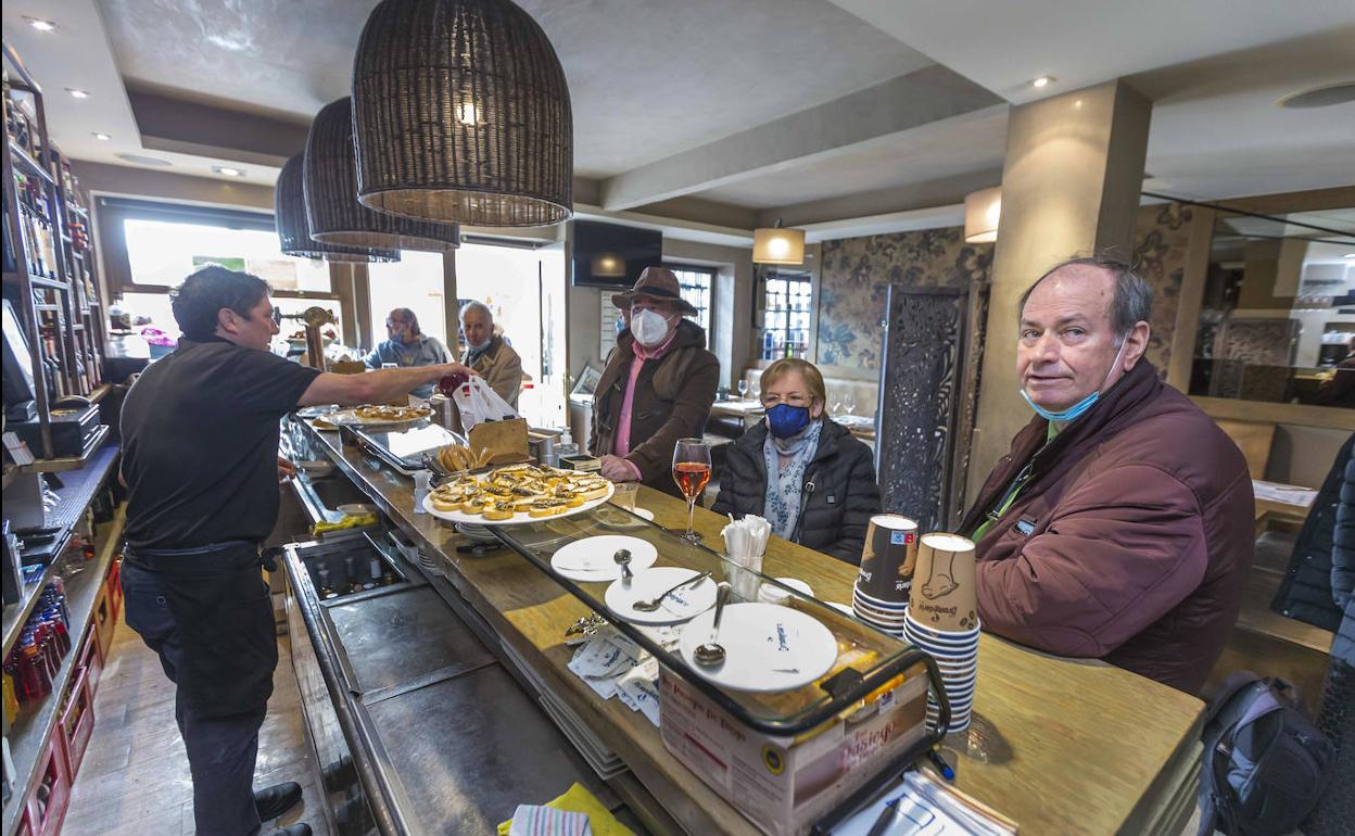 Y coincide en la valoración Ángel Muñoz, propietario de la Vermutería Solórzano: «Las barras suponen un porcentaje muy alto del negocio», ha comentado esta mañana. Y entre la clientela ya se notaban las ganas de recuperar esas conversaciones con el codo apoyado o las charlas con amigos de pie. Es más, había incluso cierto «nerviosismo» ¿Qué tal la primera jornada? «Hay cierto ambiente y ya se empieza a notar la repercusión» en el negocio. Y es que la barra juega un «papel importantísimo» en la mayoría de los negocios, pero sobre todo en los pequeños y en esas zonas de las ciudades donde la gente «alterna», entra, sale y cambia mucho de bares, ha explicado el hostelero.