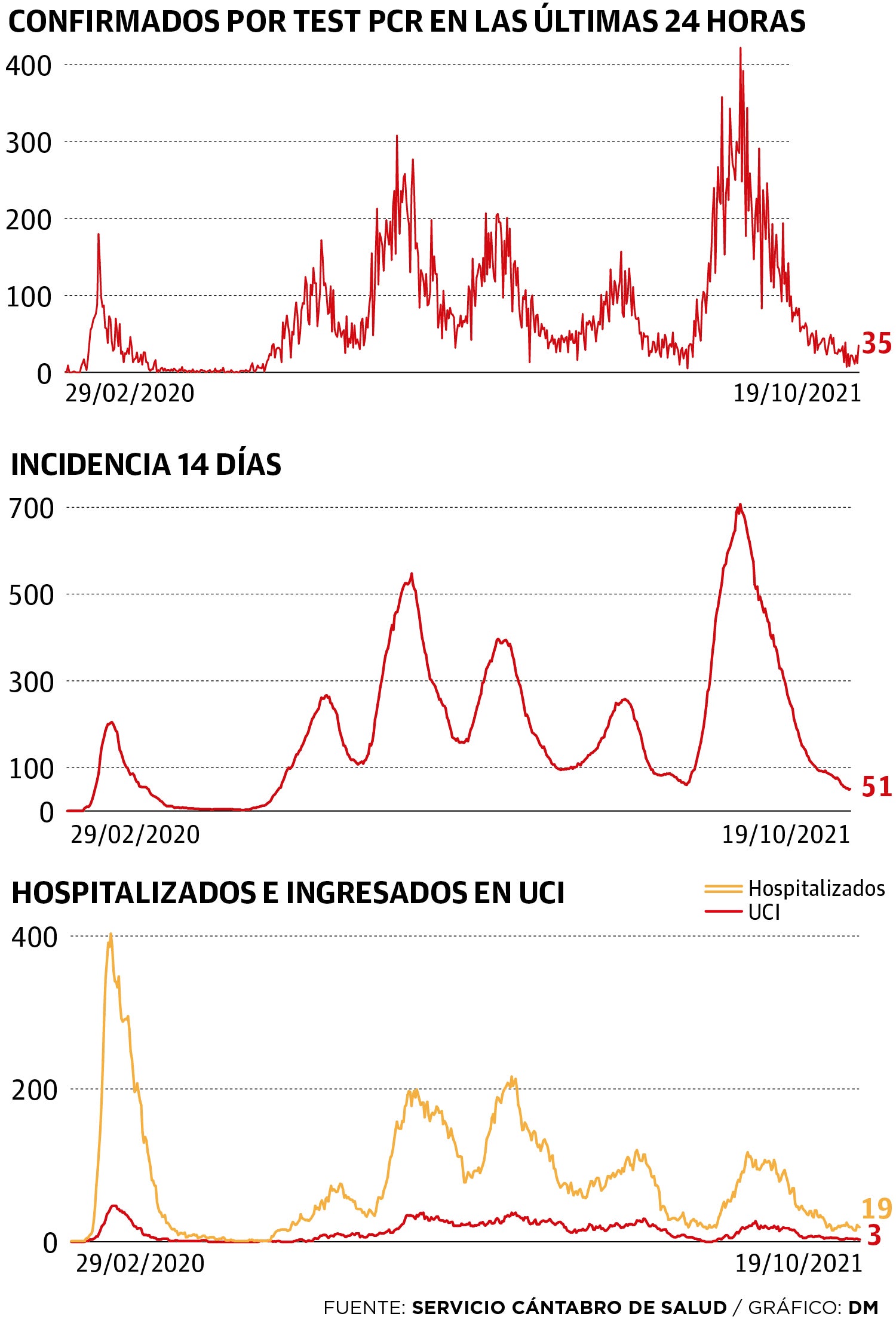 Las cautelas que acompañan a este momento se pusieron de manifiesto en la comparecencia del martes del consejero, junto al director general de Salud Pública, Reinhard Wallmann, para confirmar la entrada en el nivel de 'riesgo controlado' (la normalidad es otra cosa, como se desprendió de sus palabras). Lejos de lanzar las campanas al vuelo por la situación epidemiológica en Cantabria, fue una rueda de prensa de trámite, en la que se tuvo un recuerdo para las 616 personas que han perdido la vida por las complicaciones del covid y se lanzó una llamada «a la responsabilidad individual», con la petición expresa de reducir los contactos sociales innecesarios y cuidar las medidas preventivas, con la mascarilla y la distancia de metro y medio como elementos básicos.