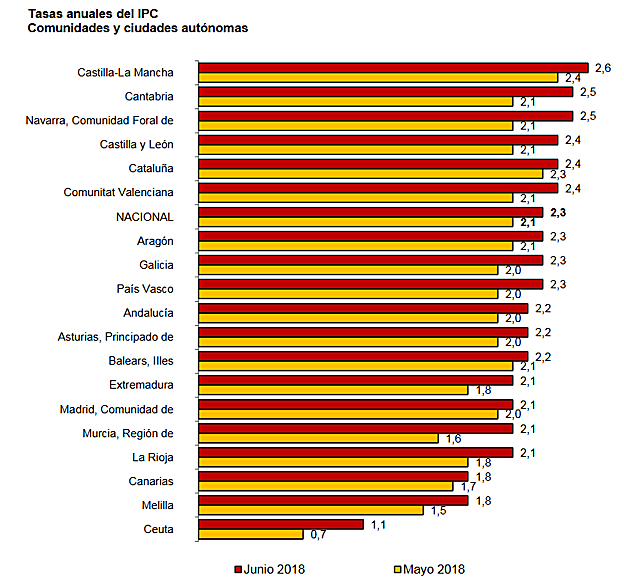 Cantabria fue la segunda comunidad autónoma donde más creció la inflación, sólo superada por Murcia. El Índice de Precios al Consumo (IPC) se elevó un 2,5%, lo que supone cuatro décimas más que en el mes de mayo y dos más que la media nacional.