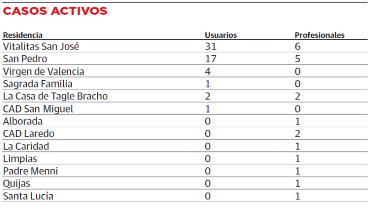 Por el momento, aunque la situación de Vitalitas está «controlada», ha indicado su director, Antonio Morales, desde que se localizaran los primeros contagios, lo cierto es que los números no remiten y hasta este jueves aún había 31 contagiados entre los residentes, cuatro de ellos hospitalizados, y seis profesionales. El resto, quienes pasan la enfermedad en el centro, parece que no presentan síntomas graves. Aquí la vacuna está haciendo su efecto. El otro centro, San Pedro, suma ya otros 22 casos, de ellos 17 son usuarios (seis ingresados). El martes, según los datos del día, había 7 positivos.