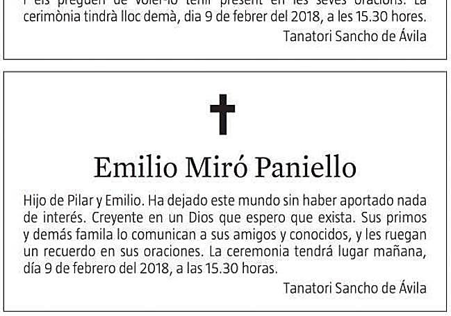 Hay textos en los que a uno nunca le apetece ser el protagonista. La esquela es uno de ellos. A pesar de todo, hay que reconocerle, al menos, que consigue lo que muchos escritores intentan toda su vida: resumir una existencia en unas líneas. Detrás de cada esquela hay una reunión familiar para tratar de cerrar un texto no exenta de negociaciones: «¿Mencionamos a los nietos?», «¿Incluimos a la segunda esposa?», «¿Ponemos que los hijos pasaron de él o ella?», «¿Lo simplificamos al máximo?». Y luego está el estilo. Algunos optan por la sobriedad clásica y minimalista; otros, por la modernidad sentimental, algunos por el buen humor, y como contraposición, hay quien aprovecha el momento para ajustar cuentas. En tiempos donde todo se borra en segundos, donde lo efímero se impone, esas pocas líneas finales contienen en sí mismas algo de resistencia.