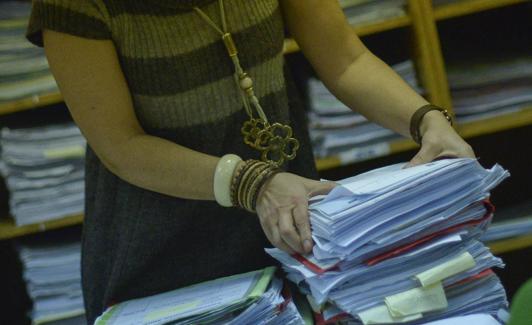 «En parte no me voy por vergüenza torera. A mí este trabajo me ha dado mucho: estabilidad, seguridad... Empecé a cotizar tarde y también quiero completar la carrera profesional. Pero me gusta mi labor y, con una carga como la que tenemos...». Habla Dolores Bustillo, funcionaria del Instituto de la Seguridad Social (departamento de revisiones de incapacidad) donde la crisis disparó la actividad al tiempo que las sillas que se vaciaban por jubilación no se ocupaban más. Ella se ha pasado dos años de la edad oficial de retiro y le gustaría que «llegara gente nueva y, sobre todo, que se le diera tiempo para aprender. Todos querríamos una plantilla más joven». Porque, cuando Bustillo accedió a su puesto hace tres décadas, «había personal suficiente y el que se iba enseñaba al que entraba». Eso no ocurre en 2019. «Ahora el que viene detrás tiene que cogerlo todo sobre la marcha: si alguien se dedica a enseñar, se acumulan los expedientes y no nos lo podemos permitir. La gente se cree que aquí le das a un botón y todo lo hace el ordenador. Nada más lejos de la realidad».