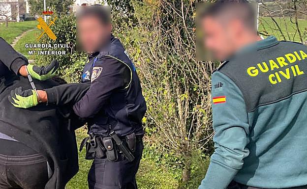 Tras recabar pistas de la dirección de huída del ladrón, que según contó la dueña de la casa fue rumbo a Hinojedo, agentes de la Benemérita y Policía Local se desplazaron hasta la zona y activaron un dispositivo para detenerlo.