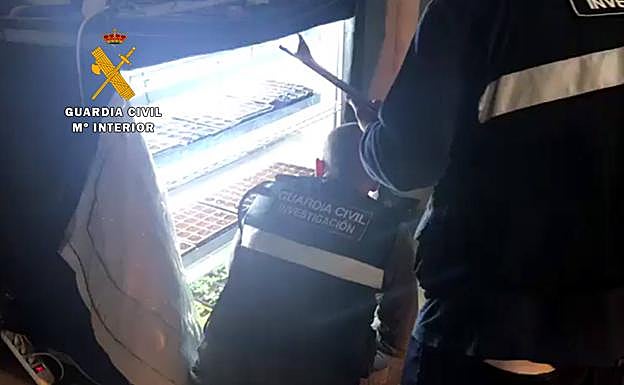 La Guardia Civil de Cantabria ha intervenido 780 plantas de marihuana en el garaje de 300 metros cuadrados de una vivienda de la localidad de Heras (Medio Cudeyo), que estaba acondicionado con una compleja instalación de crecimiento rápido de este tipo de plantas, con la infraestructura suficiente para obtener producción durante todo el año.