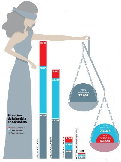 Los juzgados civiles son los más saturados de Cantabria, pero los más resolutivos de España