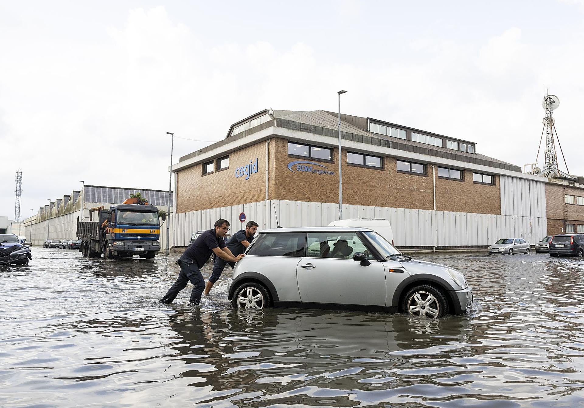 En El Astillero también hubo que lidiar «con el caos», según contó el alcalde Javier Fernández Soberón. Las inundaciones afectaron a la Avenida Chiclana, el polígono industrial, la calle de la Prosperidad... Soberón lamentó que la alerta de la Aemet «llegó tarde». En Santa Cruz de Bezana registraron multitud de pequeños incidentes y dos más reseñables: dos vehículos se quedaron parados en la rotonda junto al bar Navajeda en dirección a Corbán y hubo que retirarlos y el agua alcanzó también el paso de la calle San Juan, pero se solventó con bombas de achique.