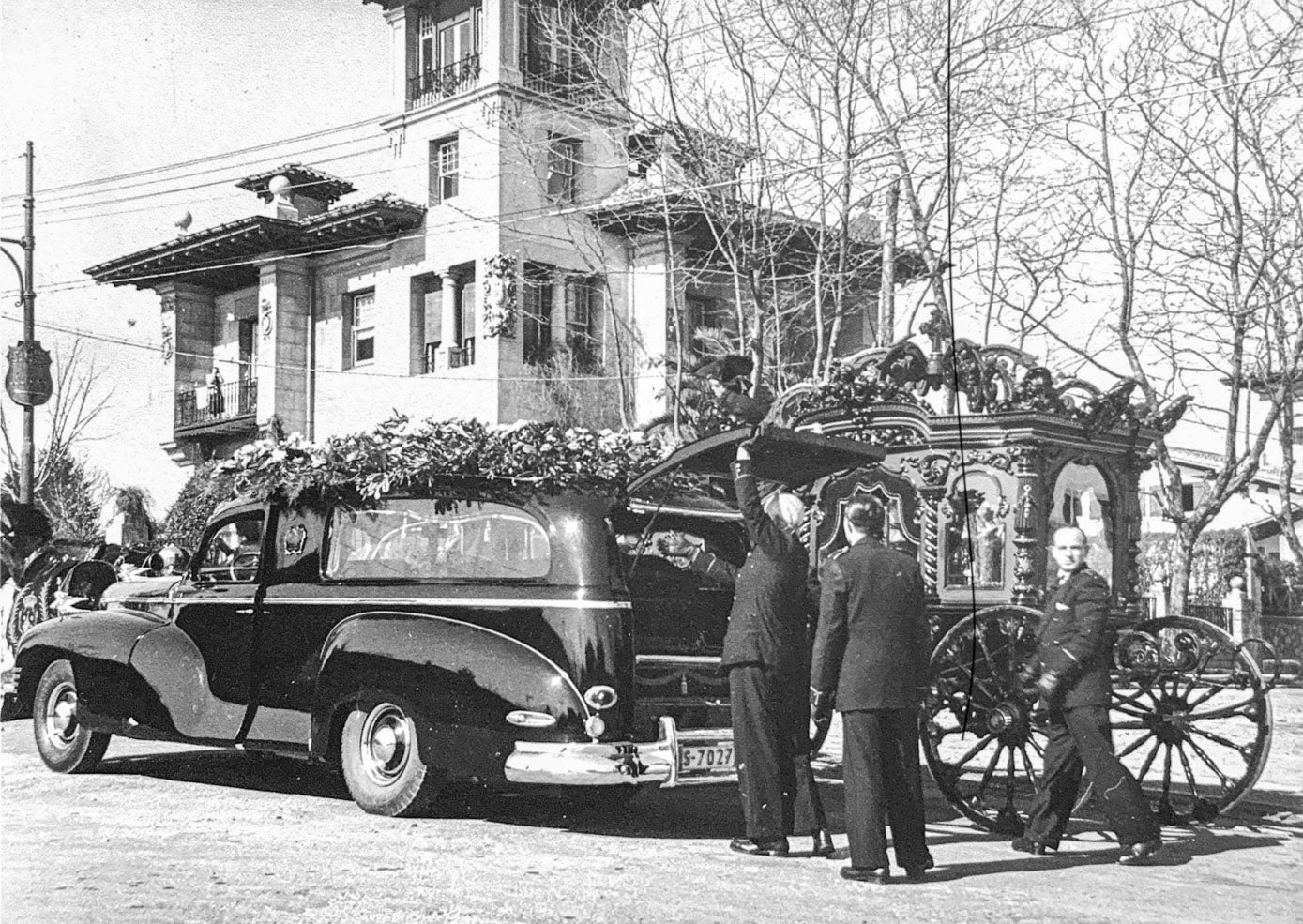 Según recuerda el propio nieto del fundador, su abuelo, conocido siempre como Nereo, inició su servicio funerario como complemento al de transporte de personas con vehículos de tracción animal que ya tenía. «La funeraria se llamaba La Bien Aparecida. Pero también había otras que eran La Propicia, El Carmen o La Verdad, y cuando vino el follón de la guerra, el incendio y todo aquello, se empezaron a unir porque no había para repartir», rememora. Con un carácter entregado por encima de todo al trabajo, Nereo levantó y consolidó los cimientos de la actual compañía hasta que en el año 1947 un incendio acabó con la gran mayoría de lo que había construido. «Cuando se produjo el incendio las cuatro tuvieron que volver a empezar, porque solamente se libraron los caballos», explica Joaquín Ruiz. «Fue en la calle Magallanes, y ahí es cuando se incorporó mi padre, que no estaba dedicado a la funeraria, sino al taller de construcción de coches».