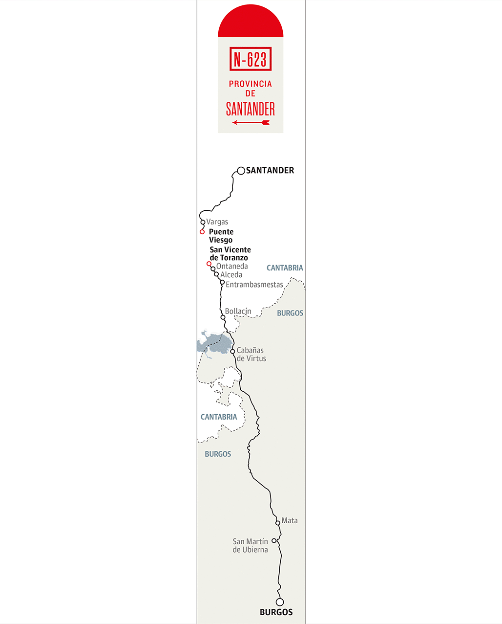 Transcurrida la primera etapa de este itinerario por la N-623, camino de Burgos, el asfalto parece imprimir un ritmo que invita a continuar avanzando lentamente para descubrir los tesoros escondidos en pequeñas paradas;pero sucede que llegados a este punto kilométrico (124), Puente Viesgo, hay tanto que ver, tanto que disfrutar, que bien merece la pena hacer noche. Una opción clara, sobre todo para el viajero que busca desconectar, descansar y relajarse, es el balneario. Por algo la selección nacional de fútbol ha elegido este enclave en numerosas ocasiones para sus concentraciones.