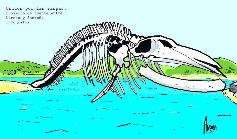 A modo de huevo de pascua, la ballena que se exhibe a pocos metros no es la que apareció en Santoña en los años cuarenta del siglo XX, sino que se varó en Santander en 1898, el mismo año en que los supervivientes de la armada volvieron de Cuba cantando.
