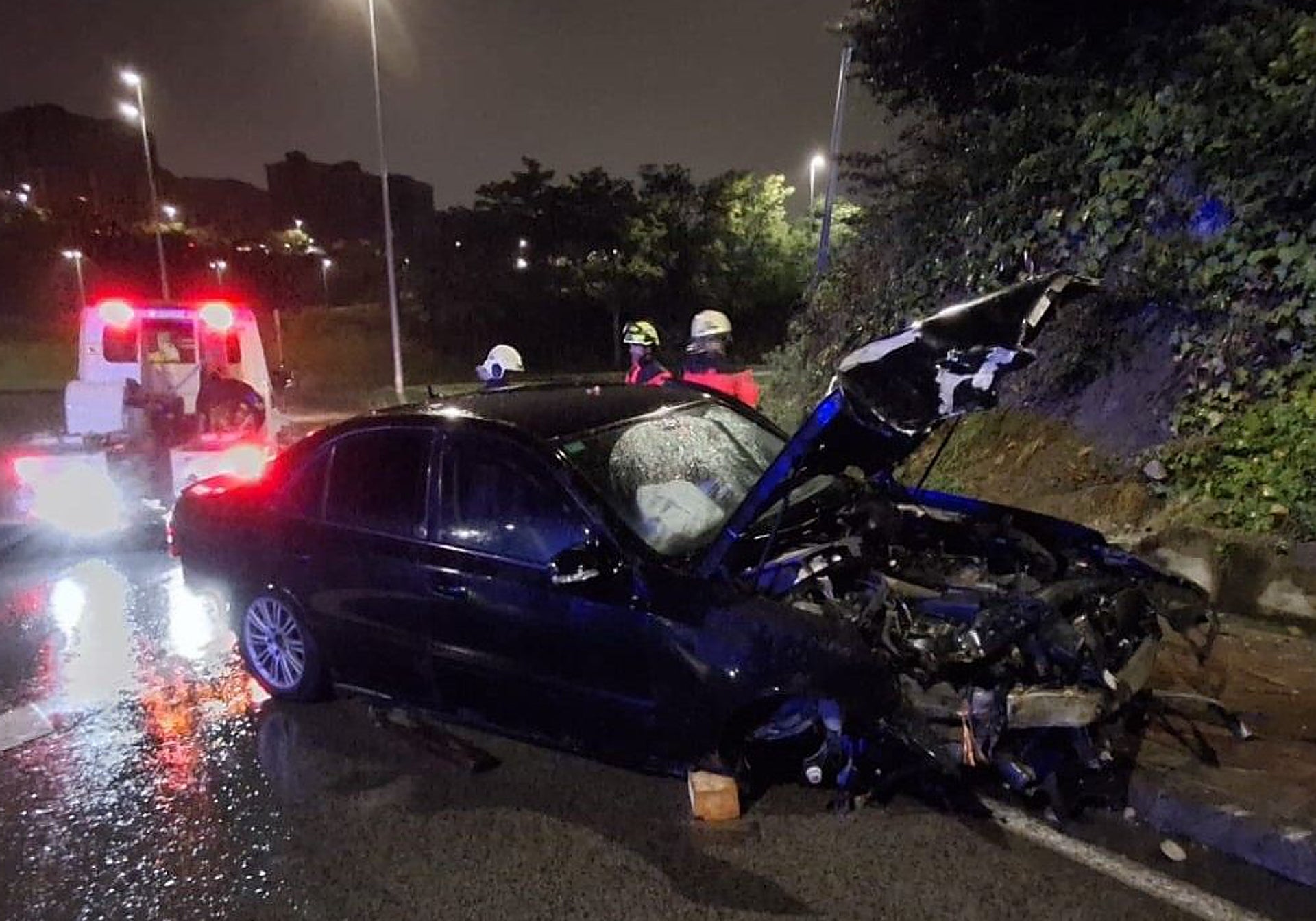El segundo suceso se vivió en la S-20, sobre las 04.00 horas. Un coche se salió de la calzada, a la altura de la calle Antonio de la Dehesa, impactando contra un talud y una farola. El servicio de bomberos de Santander se desplazó hasta el lugar del impacto con un autotanque. Asimismo, una patrulla de la Policía Local de Santander se personó en el lugar de los hechos y se precisó de la ayuda de una grúa municipal para retirar el vehículo.