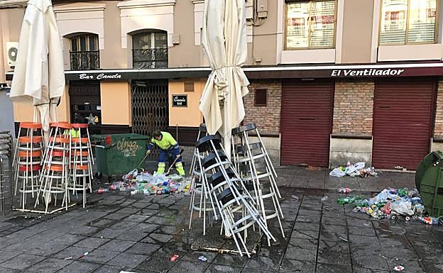 Ahora, las lentejuelas, las pajaritas y los brindis, dan paso a las calles repletas de vasos y botellas de las que tendrán que ocuparse los servicios de limpieza en una postal ya habitual este primer día de enero.