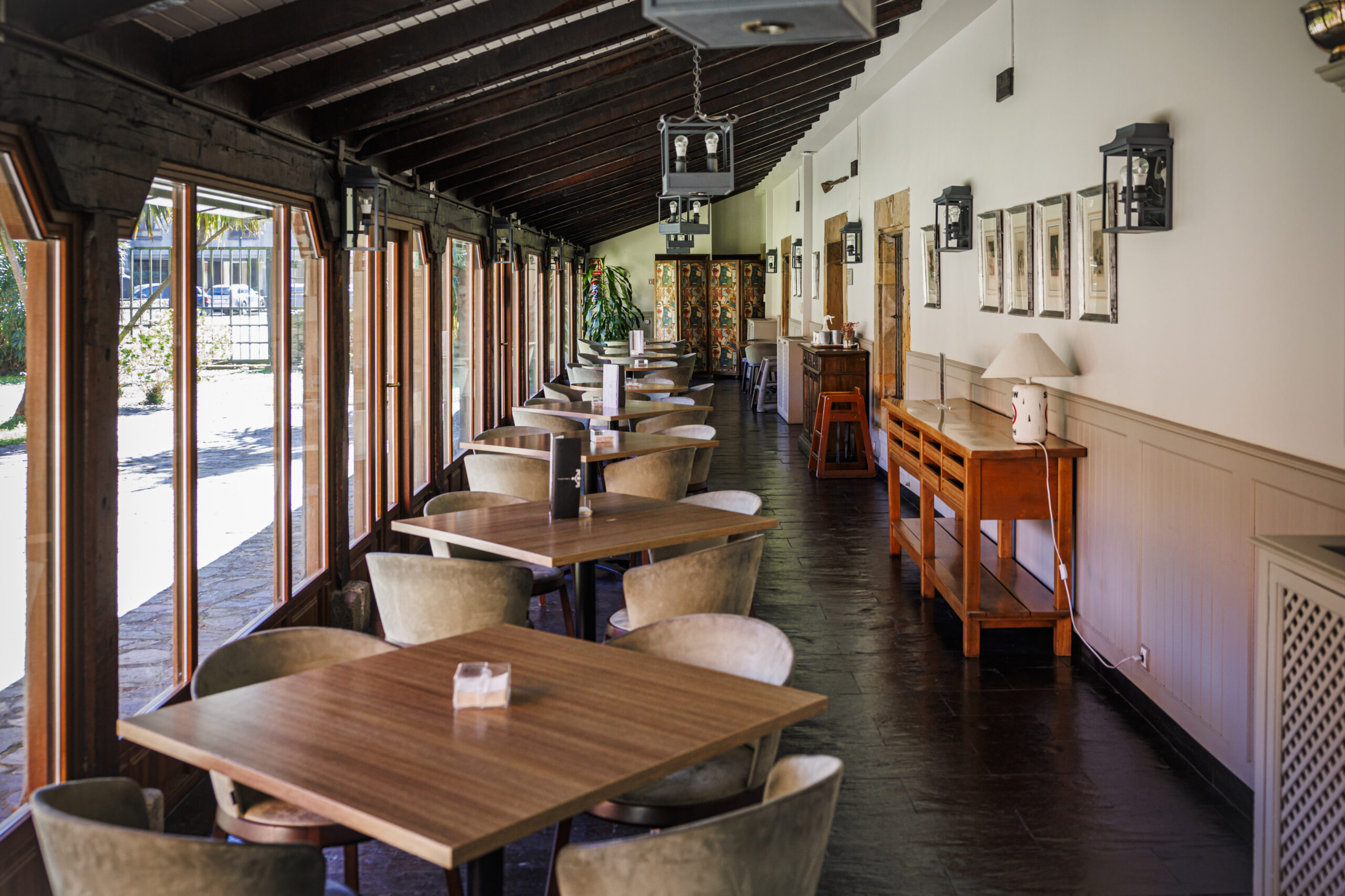 El interior es, como dice la directora, “muy sencillín”. Es lo que nos gusta, nos atrae. Una casita (por utilizar ese diminutivo tan asturiano) íntima, de 40 habitaciones exteriores, la galería-cafetería, terraza, un amplio y hermoso comedor (qué fabada…), y un confortable y delicado matrimonio entre elementos rústicos (esas techumbres atravesadas por vigas de madera) y destellos de mobiliario contemporáneo, como esos butacones del lobby. Amplias cristaleras que inundan de luz todo el Parador, que engrandecen un ‘saloncito’ pequeño con chimenea y el Salón Parque, afables, cálidos, que surgen sin fronteras con los lugares de paso, estupendos para sentarse y gozar de una buen libro, una conversación o la simple y relajada contemplación.