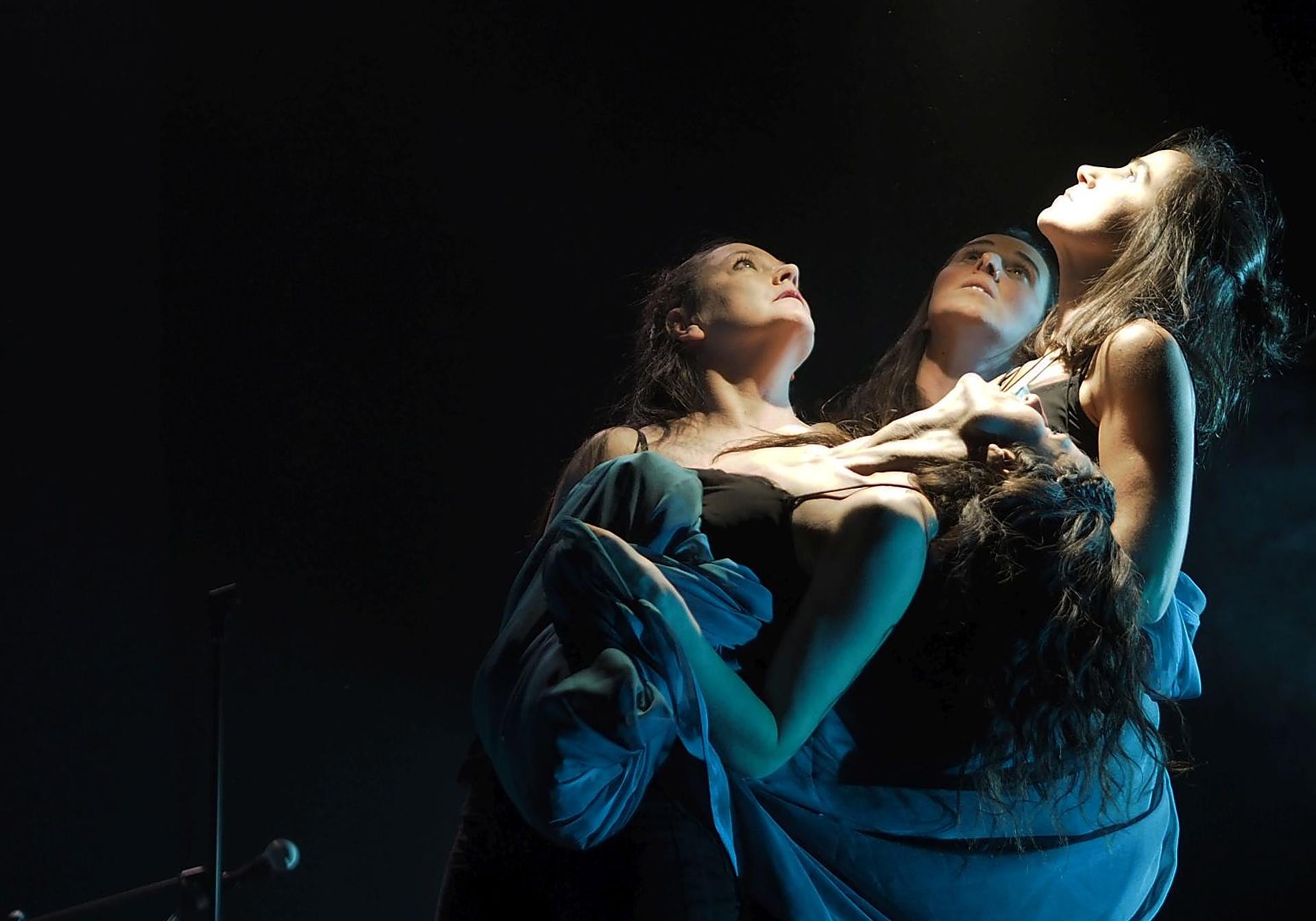 Una montaje sobre el escenario plasmada en danza, voz, música en directo, naturaleza, atmósferas poéticas, cuerpos extraños, sonidos evocadores y mujeres que también son animales.