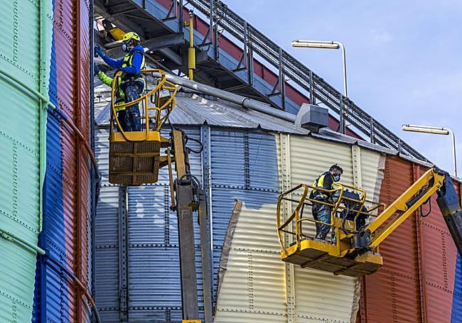 «Las almas se van haciendo sueño, alma dormida y plácida.» Uno de los versos del poema 'Canción final' de José Hierro pondrá el broche ... final a una obra que ha nacido del diálogo entre el arte, la ciudad y el mar. En unos días, cuatro silos de la Terminal de Graneles Agroalimentarios del Puerto de Santander lucirán una nueva piel. En cada uno de ellos, una letra formará la palabra Alma, visible desde distintos puntos de la bahía, incluso desde la terraza del Centro Botín. Una palabra sencilla, pero poderosa, que resume el espíritu de un proyecto concebido como un acto de cooperación y de identidad compartida.