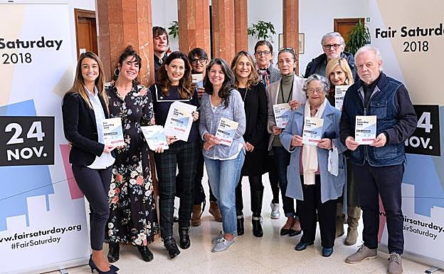 Las concejalas de Santander de Cultura, Miriam Díaz, y de Servicios Sociales, María Tejerina, han presentado hoy el programa de esta edición de Fair Saturday, junto a la coordinadora del proyecto en Santander, Itziar Rubio, y representantes de los artistas participantes y las asociaciones sociales beneficiarias.