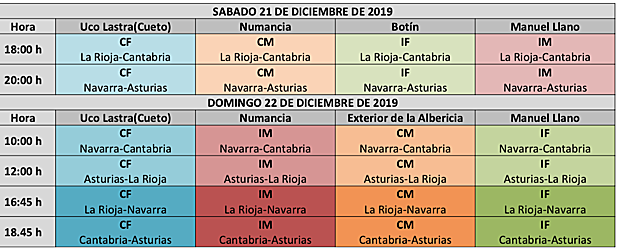 Los partidos se disputarán el sábado, 21 de diciembre, a las 18.00 y a las 20.00 horas, y el domingo, 22 de diciembre, a las 10.00, 12.00, 16.45 y 18.45 horas y podrán seguirse en directo a través de la página web de la Federación Cántabra de Baloncesto.
