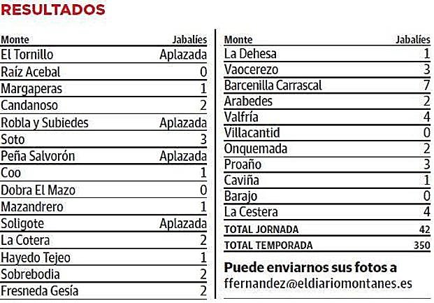 Barcenilla Carrascal, en Liébana, fue el monte donde más suidos se abatieron. El total de la temporada ya es menor al de las mismas fechas del año pasado Sólo una cuadrilla acertó con el pleno en un fin de semana en el que se cazaron 42 jabalíes