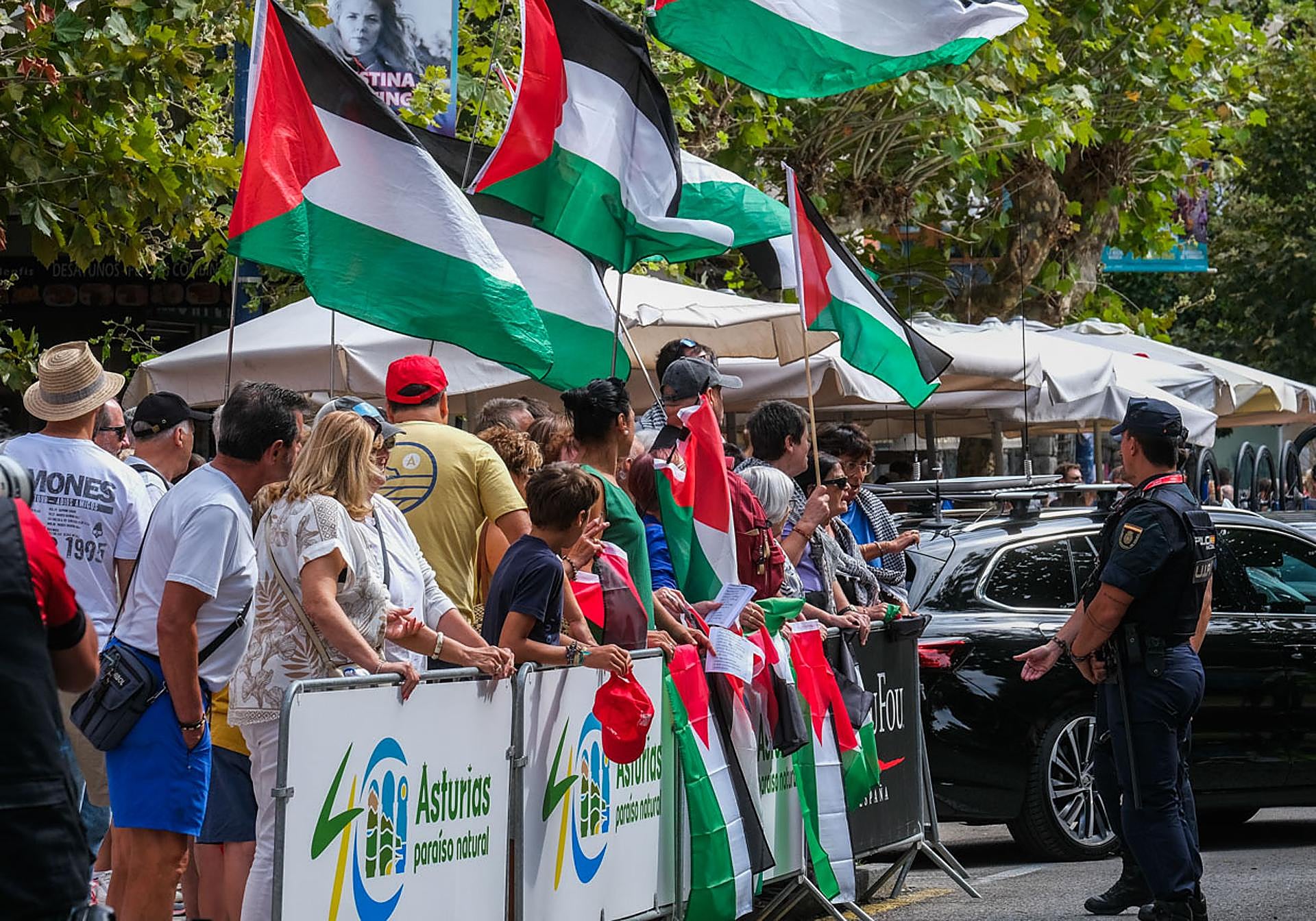Ojos que miran más de la cuenta. Miradas intrépidas que buscan una respuesta. Los aficionados y vecinos llegaron recelosos a la salida de la duodécima ... etapa de la Vuelta a España en Laredo. El revuelo informativo que se había montado la víspera en Bilbao con la suspensión de los últimos kilómetros por la aparición en escena de un grupo de manifestantes en contra de Israel y en favor de Palestina situaba en el centro de la información a la localidad pejina. «Iros pronto por si acaso hay jaleo», se decían los unos a los otros en una gasolinera de camino. Eran los auxiliares del Movistar y del Arkea que avanzaban con la rutina de los días de una Vuelta por etapas. Las expectativas quedaron en eso, afortunadamente, en una manifestación pacífica en la linea de salida y otra presencia nutrida de manifestantes en La Cavada y una tercera, mas numerosa en el alto de Brenes. Fueron actos pacíficos y supervisados por las fuerzas del orden, pero, al margen de las consignas y del contenido de sus reivindicaciones, de lo que no hay duda es de que se convirtieron en protagonistas y les robaron su cuota obligatoria de importancia a los ciclistas. En el alto de Brenes, precisamente, donde los aficionados iban llegando en bicicleta o a pie, mientras resoplaban para recuperarse de la aventura, se sorprendían de la cantidad de coches de la Guadia Civil y antidisturbios que se agolpaban en las cunetas. Las protestas alteraron el escenario típico de una etapa ciclista.