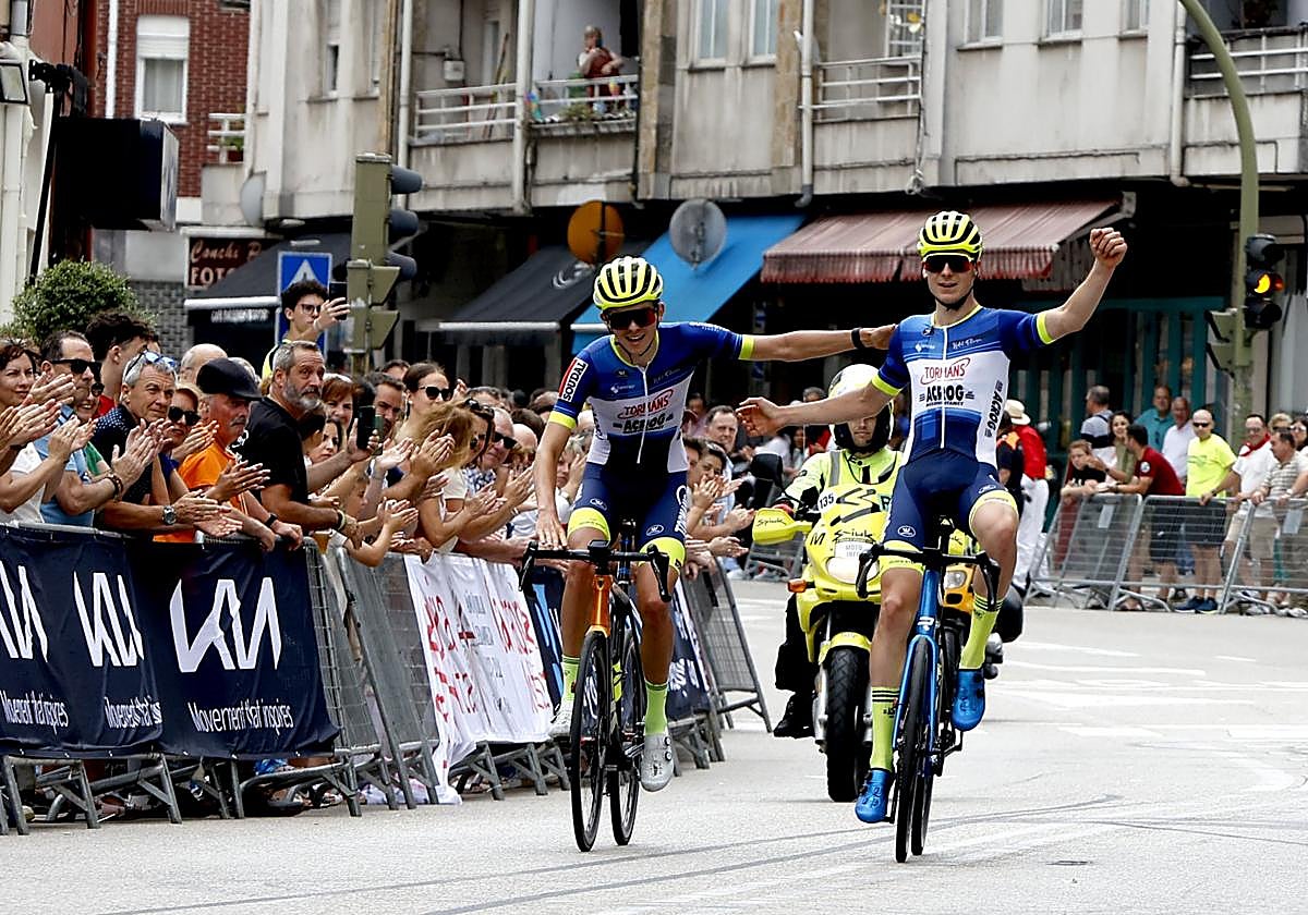 El Acrog copó además del podio, Schoofs, Staes y De Bock. Tan solo quedó aplaudir en la meta de Los Corrales de Buelna. Ovación cerrada. Los belgas dejaron para la traca final una faena de oreja y rabo. Llevaban al líder, De Bock, pero antes de que los Markel Beloki (MMR), Pablo Lospitao (MXVE) o Adria Pericas (Euro) pudieran intimidar a alguien, se produjo una escapada de veinte unidades donde se filtraron Schoofs y Sates. Todo era premeditado. Con esa maniobra exigían a los demás a trabajar y el líder, De Bock viajaría en carroza. De manual. Los dos adelantados soltaron a todos los compañeros en el Alto de Brenes y se quedaron solos en el Collado de Cieza. A tres minutos, por detrás, se lamían las heridas. El caballo se escapó. Tan solo faltaba poner en apuros a De Bock para aspirar al tercer puesto del podio porque por delante los dos belgas ya iban felicitándose con el coche de su equipo, pero nada de nada. De Bock aguantó el baile subiendo Cieza y completó la exhibición.