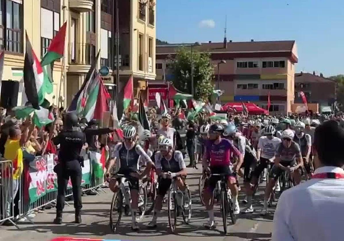 La etapa de la Vuelta ya ha partido de Cabezón de la Sal, en primera instancia en salida neutralizada y, ya en plena N-634 ... hacia Lamadrid, en la lanzada. El pelotón ha partido sin ninguna incidencia destacable, después de que la protesta por la situación en Palestina se produjera a las diez de la mañana, sin que afectara al devenir deportivo de la prueba.