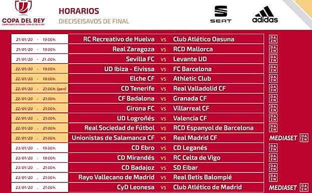 Unionistas ha descartado acoger la visita del Real Madrid en El Helmántico, donde juega el Salmantino, dadas las nulas relaciones entre ambos clubes. En caso de que la Federación Española de Fútbol (FEF) no diese el visto bueno a la disputa del partido en Las Pistas, cuya iluminación también preocupa al club charro, Unionistas baraja como opción el estadio Ruta de la Plata de Zamora. En el caso del rival del Barça, la UD Ibiza, juega sus encuentros en el Estadio Municipal de Can Misses de césped artificial, con capacidad para 4.500 espectadores.