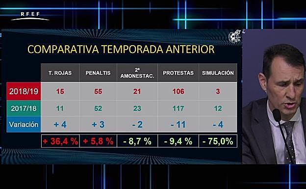 Datos. Con ellos Velasco Carballo, presidente del CTA, y Clos Gómez, analizaron las actuaciones arbitrales y la utilización del VAR en las primeras 19 jornadas de LaLiga Santander.