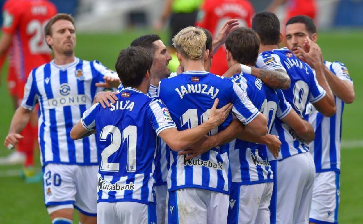 Remiro; Zaldua (Zubeldia, min. 61), Aritz, Le Normand, Monreal (Aihen, min. 78); Zubimendi, Merino (Guridi, min. 46), Silva; Oyarzabal (Merquelanz, min. 61), Januzaj (Portu, min. 62) y Willian José.