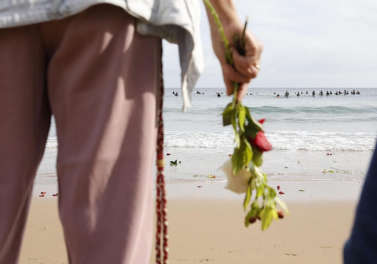 Era el arranque del funeral hawaiano con el que sus amigos quisieron despedirse en el que, entre tablas y neoprenos estuvieron también arropados por más de tres centenares de personas, tanto a pie de playa como en la explanada del Rhin, en el adiós que le ofrecieron el surf y la sociedad santanderina en general. Su entorno más íntimo y multutid de amistades.