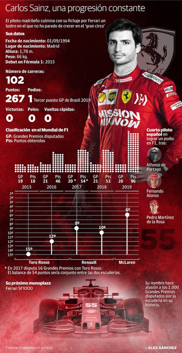El madrileño se une a la Scuderia para formar equipo con Charles Leclerc, con lo que se convertirá en el tercer español en defender los colores del Cavallino Rampante, después de Alfonso de Portago en los años cincuenta y el mucho más reciente Fernando Alonso. Sainz llega para sustituir a un Sebastian Vettel que fue el causante de unos días frenéticos de negociaciones a varias bandas.