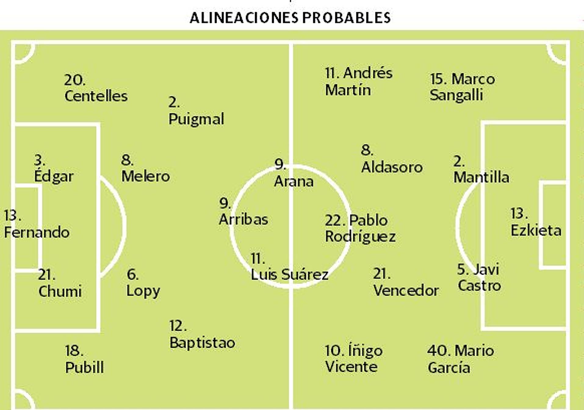 Alguna duda puede haber en el doble pivote, donde ha habido bastantes alternativas últimamente. La dupla Aldasoro-Vencedor, la original esta temporada, funcionó bien contra el cuadro carbayón. Pero Maguette Gueye, cuando salió en la segunda parte, también dejó cositas.