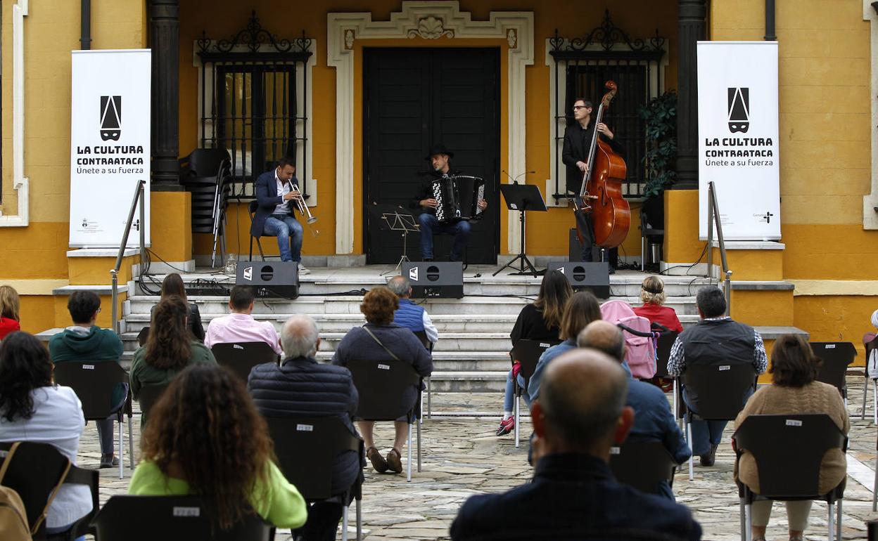 Y la música en vivo volvió a Cantabria por segundo fin de semana tras el fin del confinamiento. Esta tarde el público pudo volver a sentir en vivo el vibrar de los instrumentos tanto en el CNFoto de Torrelavega, donde el grupo de jazz y fusión Malandro Club volvió a los escenarios, como en el Palacio de Festivales, donde la cantante Sofía Ellar ofreció más de una hora de concierto acústico. Dos actuaciones enmarcadas dentro de la programación del plan 'La Cultura Contraataca' del Gobierno regional, que busca reactivar el sector y atraer de nuevo al público a las propuestas culturales. En Laredo, por su parte, la banda Lunatic Catz también ofreció una actuación acústica en el Centro Cultural Doctor Velasco de Laredo. Las convocatorias continúan este sábado en el Palacio de Festivales que acoge a partir de las 12.00 horas el espectáculo 'Pura Magia', de Raúl Alegría, y a las 20.30 horas la propuesta 'Escorzo', del bailarín Alberto Pineda y el pianista Hugo Selles. Mehnai y Mario de Inocencio, por su parte, ofrecerán un nuevo concierto acústico a la misma hora en el Museo Etnógráfico de Muriedas.