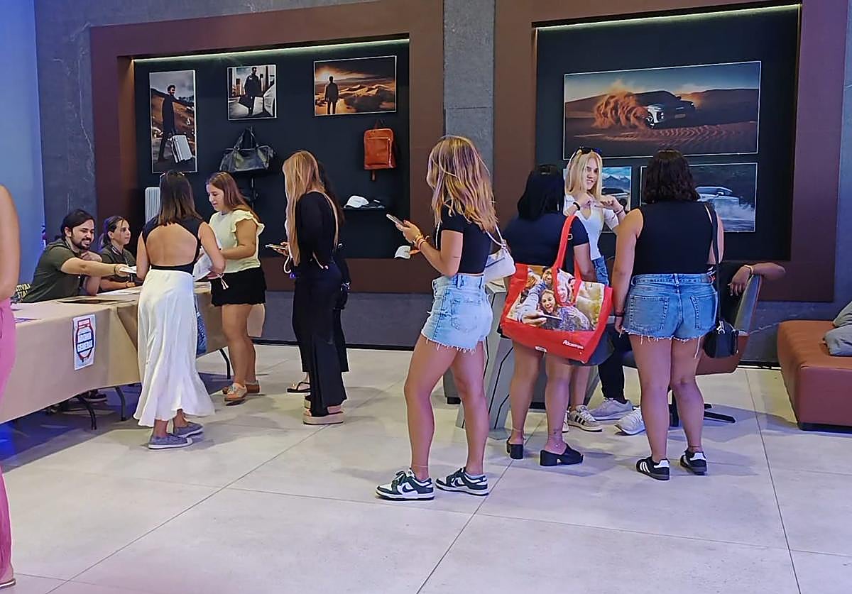 Cientos de jóvenes se han acercado al concesionario Omoda para cambiar los abonos por las pulseras, necesarias para entrar al recinto