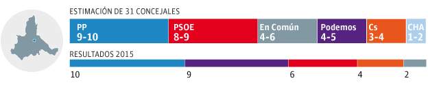 La llave de la gobernabilidad para la izquierda estaría en la mano de Zaragoza En Común que conseguiría entre 4 y 6 representantes, sumados a los de Podemos con entre 4 y 5. Ciudadanos alcanzaría entre 3 y 4 concejales y Chunta Aragonesista entre 1 y 2.
