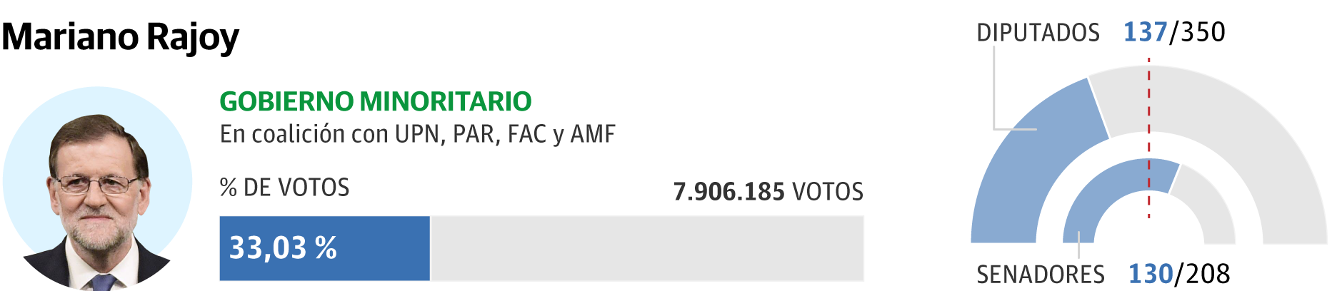 Después de una accidentada investidura que desencadenó una grave crisis en el PSOE, dimisión incluida de Pedro Sánchez, Rajoy inició su tercer mandato, pero en una frágil posición parlamentaria que motivó una parálisis legislativa. Los socialistas obtuvieron los peores resultados electorales de su historia, y Podemos y Ciudadanos también vieron debilitadas sus expectativas aunque mantuvieron grupos significativos en el Congreso. Pero la condena al PP en el 'caso Gürtel dio pie a la presentación de una moción de censura del PSOE contra Rajoy que por primera vez en la democracia salió adelante. Sánchez llegó a la Moncloa con el menor respaldo de la democracia, y no logró forjar una alianza estable. La crisis desatada por los independentistas catalanes y la imposibilidad de sacar adelante los Presupuestos del Estado forzaron el adelanto de las elecciones a este domingo.