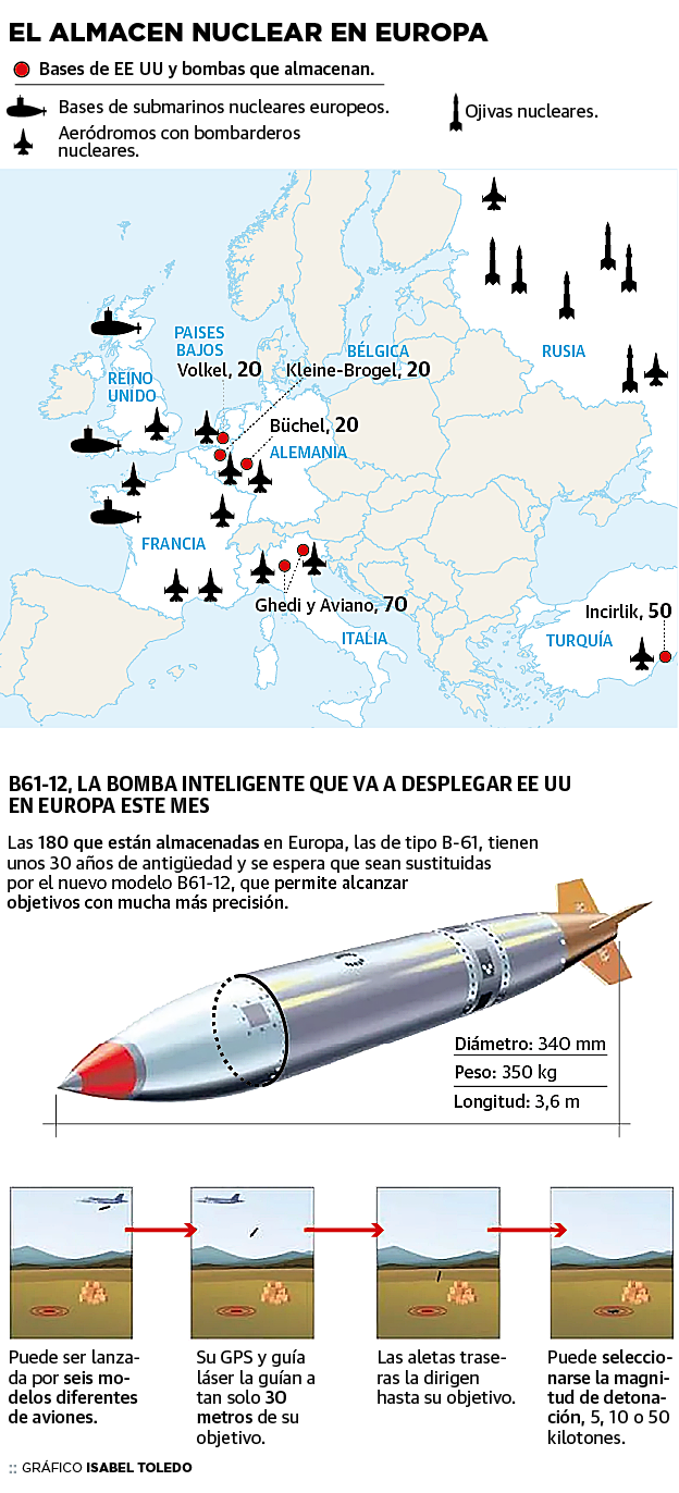 El Pentágono renueva su arsenal atómico en el Viejo Continente, repartido en media docena de bases de la OTAN, con el B61-12, el proyectil táctico inteligente más moderno de su catálogo