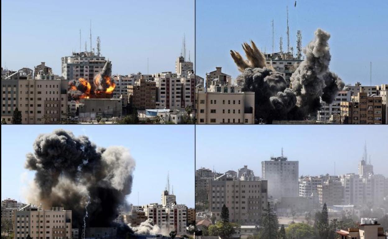 El Ejército israelí destruyó la torre Al Jalaa en la que trabajaban en Gaza medios internacionales como el canal catarí Al Jazeera o la agencia estadounidense Associated Press (AP). Los militares contactaron con el dueño del edificio de 13 plantas y le dieron una hora para desalojarlo ya que «albergaba objetivos militares, pertenecientes a la inteligencia militar de la organización terrorista Hamás» según el comunicado del Ejército. Cuando se cumplieron los 60 minutos, cuatro misiles derribaron el edificio. Esta operación provocó la reacción de Estados Unidos, que hasta ahora solo había hablado para condenar el lanzamiento de cohetes por parte de Hamás, y la responsable de prensa la Casa Blanca, Jen Psaki, recordó a Israel que «asegurar la seguridad de los periodistas y de la prensa independiente es una responsabilidad suprema». El Ejército respondió diciendo que Hamás »se esconde y utiliza como escudos humanos« a los medios de comunicación.