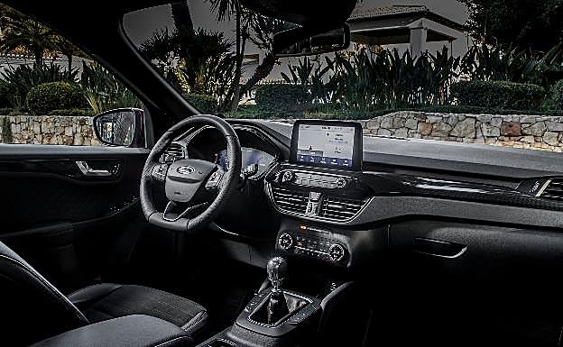 En su interior, de serie, destaca un cargador inalámbrico, y entre las sofisticadas opciones encontramos el sistema de infoentretenimiento SYNC 3 de Ford 8 con pantalla táctil central de 8 pulgadas, y un sistema de sonido B&O de primera calidad.