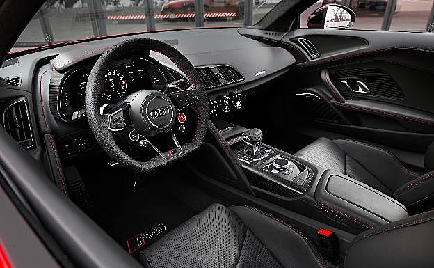 Las tensas líneas del diseño exterior marcan la pauta también en el habitáculo. Su elemento más llamativo es el 'Monoposto', un gran arco de contorno pronunciado en la zona del conductor que recuerda mucho al cockpit de un coche de carreras. El 'Monoposto' rodea la instrumentación Audi virtual cockpit, con una pantalla de 12,3 pulgadas integrada en una carcasa independiente. El volante de cuero multifunción plus ofrece dos o, en la versión Performance, cuatro satélites de control, cada uno de ellos para utilizar el Audi drive select, arrancar el motor, activar el modo Performance y el sistema de sonido del motor o controlar el Audi virtual cockpit. El conductor y los pasajeros pueden acomodarse en los asientos deportivos o en los nuevos asientos tipo bucket, tapizados en cuero y Alcantara. Delante de la plaza del acompañante el salpicadero luce una insignia con un brillante emblema que muestra las siglas RWD.
