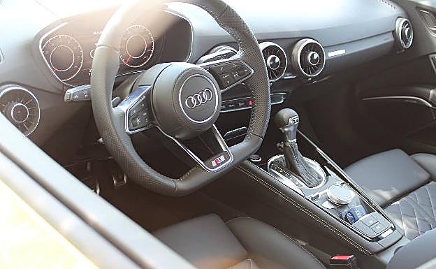 Cuando te adentras en el interior, accedes a un habitáculo totalmente orientado al conductor, con todo a la vista; y con un gran cuidado por el detalle como, por ejemplo, por su esbelto panel de instrumentos y la consola central, que se asemejan al ala de un avión. También las salidas de aire de la climatización -con elementos de control integrados- recuerdan a las turbinas de un motor a reacción, detalle clásico y distintivo del TT.