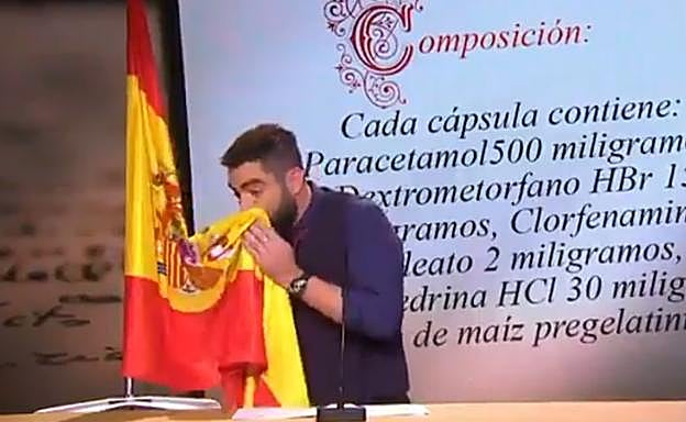 El investigado ha señalado que durante todo este tiempo «se ha hablado mucho sobre los límites del humor» y «sobre si ofende o no» el 'sketch' en el que, mientras leía el prospecto de un medicamento antigripal, estornudaba y se sonaba la nariz con la enseña nacional.