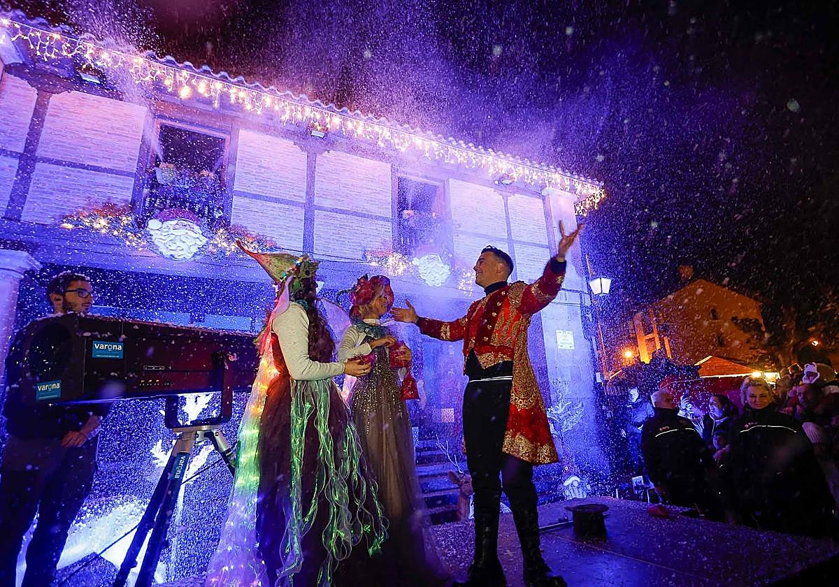El mago y las hadas hicieron paradas frente al gran decorado que se levanta en medio de la calle medieval, en el de un Ayuntamiento totalmente ataviado y, para terminar, frente a la entrada al Parque Mágico, la gran apuesta de este año, reforzada con más iluminación y vídeos y pagando seis euros por la entrada online, para evitar las largas colas del año pasado, o cinco en una taquilla física en el acceso a ese parque.