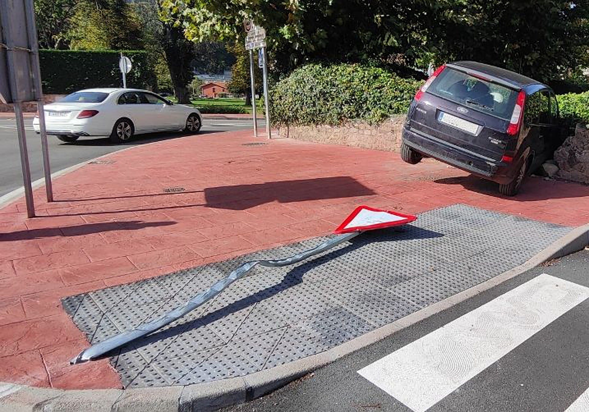 El aparatoso accidente se produjo en la nueva rotonda que regula el tráfico entre la Avenida Cantabria e Industria de la ciudad | La conductora ha sido trasladada al Hospital de Sierrallana para su evaluación